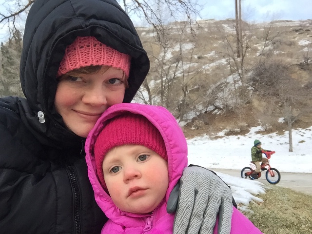 Freddie got a new bike for Christmas and we have to get creative trying to find places to ride it. We found a little park that has a flat, mostly snow-free parking lot.